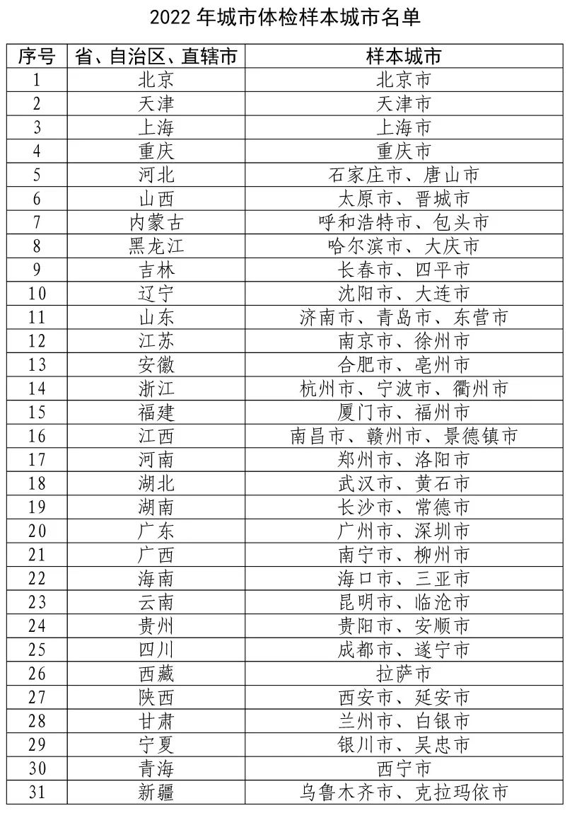 為深入貫徹習近平總書記關(guān)于建立城市體檢評估機制的重要指示精神,落實中共中央辦公廳、國務院辦公廳印發(fā)的《關(guān)于推動城鄉(xiāng)建設綠色發(fā)展的意見》部署要求,經(jīng)協(xié)商研究,在歷年城市體檢工作基礎上,決定繼續(xù)選取直轄市、計劃單列市、省會城市和部分設區(qū)城市(見附件1,以下簡稱樣本城市)開展2022年城市體檢工作。現(xiàn)將有關(guān)事項通知如下: