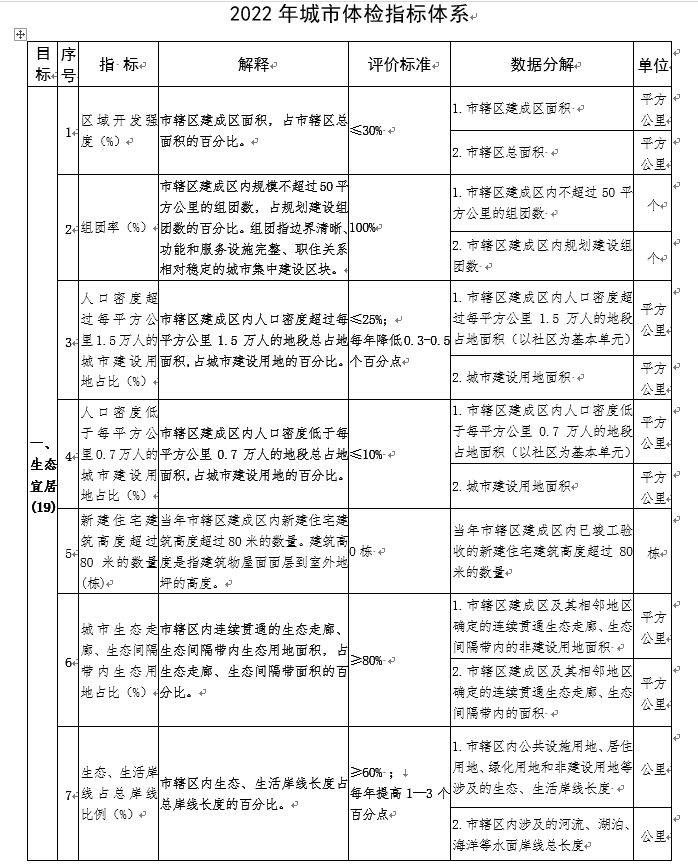 住房和城鄉(xiāng)建設部關(guān)于開展2022年城市體檢工作的通知