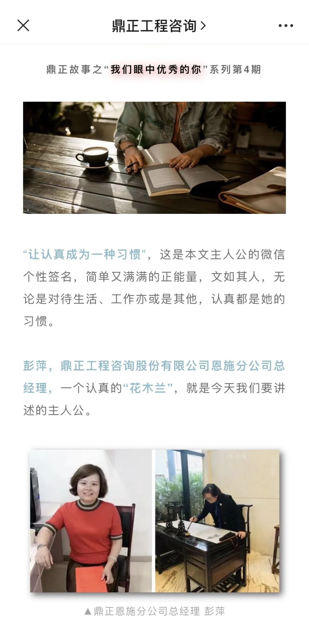 “鼎正工程咨詢”微信公眾號,既是公司品牌傳播的窗口,也是同事們互動交流的平臺。從2020年起,微信公眾號便相繼推出了“我們眼中優秀的你”、“鼎正故事”、“榜樣人物”、“鼎正人物”等人文宣傳板塊,通過深度挖掘工程師的成長故事,全方位展示鼎正人的企業文化,為讀者奉上一道道關于奮斗的精神大餐。