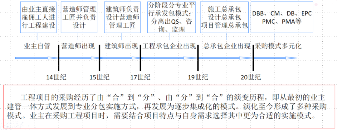 在這一演變過程中,業(yè)主的決策權(quán)不斷被削弱,外部機構(gòu)由工作責任不獨立(為業(yè)主提供服務與支持,但不需要承擔決策責任)發(fā)展為不完全獨立(業(yè)主管理的必要補充),進而發(fā)展為責任基本獨立(代表業(yè)主實施管理)。對工程項目的管理由“建管合一”逐步發(fā)展為“建管分離”。
