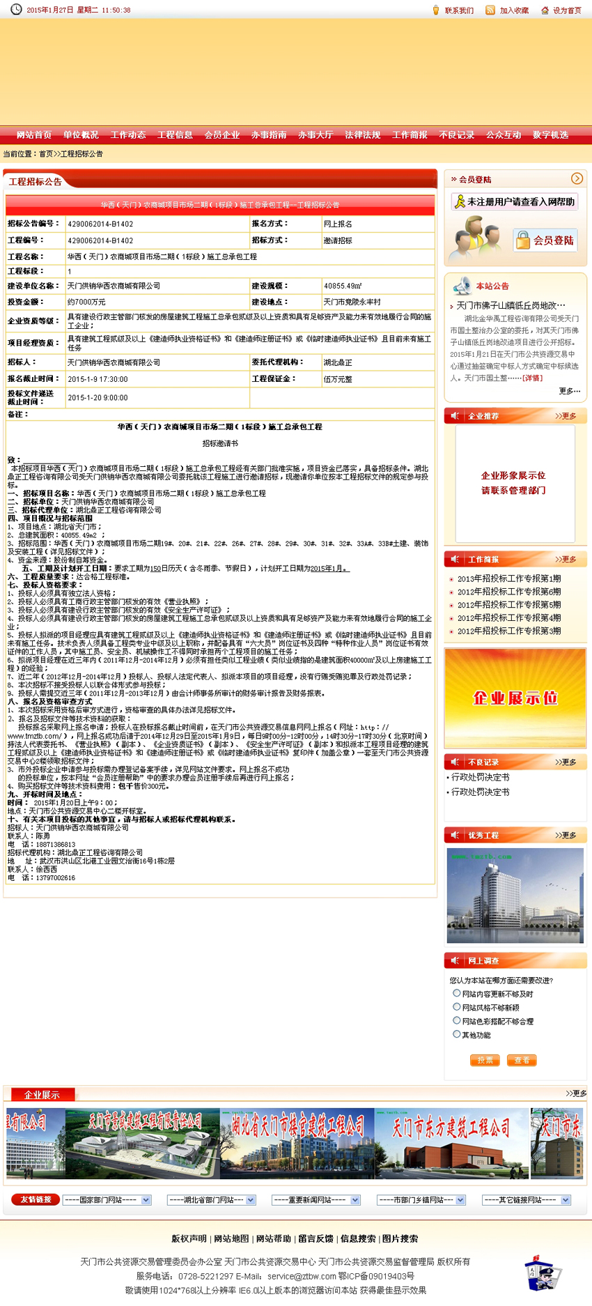 華西(天門)農商城項目市場二期(1標段)施工總承包工程