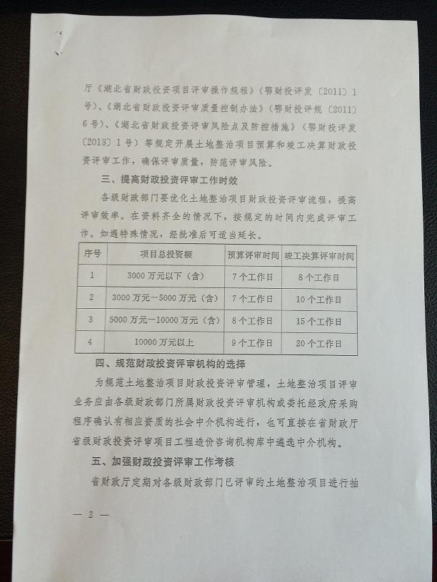 湖北省財政廳關于規范土地整治項目財政投資評審工作的通知